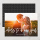 Celebra el año nuevo con una tarjeta de foto personalizado que incluye un divertido y moderno guión y un superpuesto de tipos de letra para mostrar tu foto y un patrón en la parte de atrás.