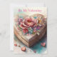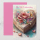 Sé mi tarjeta de San Valentín. El frente muestra una caja de corazón con flores y dice: Sé mi Valentín. Esta es una tarjeta plana con el color rosa en el fondo y espacio para escribir tu mensaje.