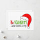 Una tarjeta de Navidades humorísticos o una tarjeta de vacaciones con un caprichoso gorra de Santa Claus. Incluye la frase "Sé travieso... salva a Santa un viaje". ¡Fantástico para algunas risas durante los feriados!