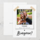 Celebra tu vínculo especial con tu mejor amigo y pídeles que sean tu dama de honor o dama de honor con nuestra tarjeta de propuesta de fotos de Will You Be My Bridesmaid. Esta tarjeta moderna y minimalista presenta un diseño en blanco y negro, que le permite personalizarla con una foto muy apreciada, creando una manera sincera y memorable de invitarles a estar de su lado en su día de boda. Es una tarjeta de foto perfecta para dama de honor que captura bellamente la esencia de tu amistad y el alegre viaje por delante.
