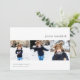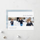 Envíe saludos de Hanukkah a amigos y familiares con nuestras elegantes tarjetas de fotos. Diseñada para acomodar tres de tus fotos cuadradas favoritas dispuestas lado a lado en un formato de collage, la tarjeta incluye tu saludo personalizado Hanukkah (mostrado con "Joyous Hanukkah") y el(los) nombre(s) familiar(s). Las tarjetas cambian a un sutil patrón de rayas acuáticas en azul pastel.