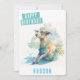 Una linda tarjeta de cumpleaños acuarela con una cabra celebrando el verano en la parte delantera con "Feliz Cumpleaños" en una letra en negrita blanca y con mayúsculas. Personalice la parte delantera agregando su(s) nombre(s). La parte posterior de la tarjeta contiene espacio para el mensaje escrito a mano o con tipeo.