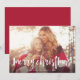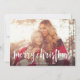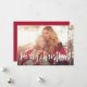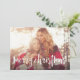 Comparte saludos de vacaciones con estas tarjetas de fotos de Navidad con tu foto horizontal o orientada al paisaje favorita en impactante sangría completa. "Feliz Navidad" aparece en la parte inferior como texto superpuesto en tipografía con letras de pincel blanco. Personaliza con tu nombre o apellidos debajo. Las tarjetas se revierten a un punto acuarela y el patrón de hojas en verde abeto festivo.
