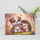 Tarjeta adorable del día de San Valentín - Alegrar el día de alguien con esta tarjeta irresistiblemente linda que presenta un erizo alegre y un cachorro adorable contra un fondo suave con corazones y rosas, este diseño irradia encanto y amor. Perfecto para amantes de los animales, amigos o esa persona especial, es una forma encantadora de decir "Me importa".