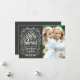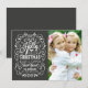 Plantilla rizada festiva y folksy de la foto de los saludos del día de fiesta del navidad del estilo del tiza-arte en tarjetas planas de moda. De la pizarra del estilo marco caprichoso swirly con la tipografía blanca y la mezcla retra de estilos mano-indicados con letras, adornadas con las bayas escarchadas del follaje y del acebo. Añada su foto de familia preferida del día de fiesta y modifique el texto para requisitos particulares. Manera moderna de enviar saludos felices de las vacaciones de invierno a todos sus amigos y amados con instinto rústico elegante. Franqueo a juego, invitaciones de la celebración de días festivos, y tarjetas de felicitación disponibles a petición. PCF15