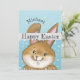 Un conejito al estilo personalizado animará a sus hijos. Les encantará este conejito de Pascua pintado a mano con un fondo salpicado de azul claro. El cuadro está a ambos lados, la parte de atrás muestra al conejito escondiendo los huevos. Este es azul para el niño y hay uno rosado para el chica. También puedes encontrar un sobre lindo y una carta del conejo de Pascua a los niños de azul o rosa de la misma colección.