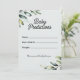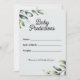 Añada un toque de vegetación fresco y encanto intemporal a su ducha de bebé con esta tarjeta de juego de predicciones botánicas para bebés, diseñada pensando en la simplicidad moderna. Con sus elegantes ramas de eucalipto en acuarela y sus suaves tonos de oliva sobre un fondo blanco limpio, este diseño exuberante de belleza natural y sofisticación tranquila. Es la actividad perfecta para atraer a sus huéspedes y captar sus dulces esperanzas y suposiciones para la llegada del bebé. Ideal para las duchas de bebés sin distinción de género, los padres con conciencia ecológica o los amantes de la vegetación. Sencillo, elegante y memorable — un simpático recuerdo para los años venideros.