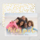 Falsa tarjeta contemporánea de la foto del día de fiesta de las bendiciones el | del Relieve metalizado dorado. © de Elke Clarke otros estilos y colores disponibles en www.zazzle.com/epclarke. La tipografía clásica de la escritura del oro con la palabra "bendijo" con un efecto blanco del ombre. Una de manera perfecta de mostrar su foto de familia atesorada. Una tarjeta de felicitación del día de fiesta su familia y amigos acariciará. El oro y el modelo blanco encendido apoyan de tarjeta.