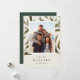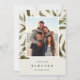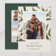 Sistemas de tarjeta botánicos elegantes de la foto del día de fiesta su foto de familia preferida en un fondo de hojas pintadas a mano verdes y marrones. Personalice con sus nombres o apellido debajo del navidad que saluda ("feliz y bendecido") en letras elegantes, clásicas. Añada tres fotos adicionales al dorso en un fondo del verde caqui que pone en contraste, junto con el año.