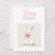 Un conejo blanco de Pascua con un lindo arco rosado en una tarjeta plegada. Ideal para los niños y los estilos de las niñas.