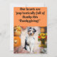 Celebra la temporada de gratitud con nuestra encantadora tarjeta de Acción de Gracias especialmente diseñada para los amantes de las mascotas. Esta tarjeta contiene unos adorables dichos reconfortantes de un perro que capturan la esencia del Día de Acción de Gracias. Comparte el amor con tus compañeros de cuatro patas y expresa tu agradecimiento con esta tarjeta pw-some.