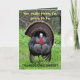 Una divertida e hilarante tarjeta de Acción de Gracias para familia y amigos. Esta carta muestra un gran pavo salvaje "Tom" con sus plumas todas infladas. Mirándote directamente a ti con una mirada rebelde en su rostro, este pavo dice, "¿De verdad crees que voy a ser cena de Acción de Gracias?" En el interior de esta tarjeta, este mismo pavo se da vuelta con su trasero mirando hacia ti y todas sus desafiantes plumas se hinchan mientras dice, "¡ENGAÑA!" Feliz Día de Acción de Gracias.
