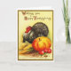 Carta de Acción de Gracias de época con pavo y calabaza.