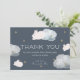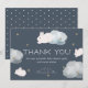 Esta tarjeta de agradecimiento de esta linda ducha para bebés cuenta con conejos voladores / conejos / liebres con falsas estrellas purpurinas de oro y nubes esponjosas sobre fondo azul/azul marino de medianoche. El reverso presenta fondo azul marino con puntos de polka blancos. Personalízalo para tus necesidades. Puedes encontrar más productos de conejo / liebre en mi tienda.