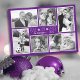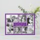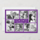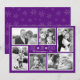 Tarjetas de collage con fotos de Navidades morados. Tarjeta de saludo plana con seis fotos familiares, firma y fecha. "Amor, alegría, paz" es el saludo en alta letra moderna.