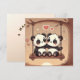 Agrega un toque de encanto al Día de San Valentín con la Tarjeta de amor de panda bailarín. Este diseño caprichoso presenta dos pandas acurrucados en un columpio de madera, rodeados de corazones. Es una forma dulce y romántica de expresar tu amor.
