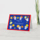 Una carta de Navidades luminosa y festiva con seis pequeños ángeles blancos que lustran las estrellas en preparación para Navidades, de un diseño de collage de papel pintado a mano de Judy Adamson. El saludo en la parte delantera, con letras blancas en un fondo azul profundo, es 'Feliz Navidad y el interior queda en blanco para tu propio mensaje.