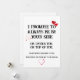 Hazlo reír, sonrojar y sentir amado con esta tarjeta sucia y traviesa de aniversario para él, diseñada para darle a tu ocasión especial un giro juguetón y sexy. Ya sea tu aniversario, el Día de San Valentín o su cumpleaños, esta tarjeta inapropiada y divertida es la forma perfecta de despertar la emoción y mostrarle a tu pareja que no tienes miedo de divertirte un poco. La tarjeta queda en blanco en el interior, lo que te da mucho espacio para agregar tu propio mensaje personal, sincero o picante.