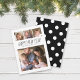 Esta tarjeta de festividad fotográfica muestra cuatro de tus fotos y las palabras "Feliz Año Nuevo" en un moderno tipo de letra serif escrito a mano. La tarjeta tiene un patrón de círculo bruto blanco contra un fondo negro en la parte posterior. Personalízalo reemplazando el texto del marcador de posición y reemplazando las fotos de ejemplo/marcador de posición con su propia foto. Para obtener más opciones, como cambiar el tipo de letra y su tamaño/color, haga clic en el botón "Personalizar". Fotografía de marcador de posición de © Storytree Studios, Stanford, CA *Por favor, tenga en cuenta que la marca de agua de Zazzle que aparece en la previsualización del zoom NO aparecerá en el producto impreso final. © Rosewood y Citrus