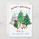 Happy Holidays Golf Christmas Tree Card Envíe saludos de vacaciones a amigos y familiares, al estilo golf, con nuestra tarjeta con accesorios de golf y trenza de Navidades decorada con coloridas luces de cuerda y con copos de nieve azules cayendo. Personalice con sus nombres y saludos de personalizado a lo largo de la parte inferior. La manera perfecta de desear una feliz Navidad a su familia y amigos amantes del golf.
