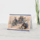 Tarjeta de pascua encantadora del vintage del artista alemán renombrado Arturo Thiele, representando los conejitos de pascua que entregan sus mercancías en motocicleta - y que encuentran a un músico soñoliento de la rana a lo largo de la manera.