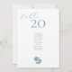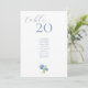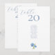Estas tarjetas de boda azules y blancas de moda tienen un número de mesa personalizado, una lista de asientos para invitados editables y una hidraandea floral. Un conjunto contemporáneo de fuentes más un diseño de hidrangea floral prepara el escenario para un evento a la vez moderno y elegante. Esta plantilla puede alojar 2 nombres más como máximo. Los diseños tanto frontales como posteriores son idénticos para una visualización fácil desde diferentes ángulos. Sugerencia: elimine la marca de agua Zazzle en la parte posterior de la tarjeta seleccionando esta opción en la página del producto. Esta tarjeta forma parte de una colección que incluye invitaciones y otros artículos de papel para bodas.
