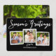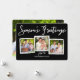 Un diseño moderno de bonita tipografía que dice "Saludos de temporada" y presenta un collage enmarcado de tres fotos de tu feliz familia en la parte delantera. En la parte posterior, una foto de tamaño completo es adecuada para encuadernar. Una hermosa tarjeta contemporánea para cualquier saludo de vacaciones.