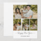 Celebre el comienzo de un año nuevo brillante con esta moderna tarjeta de felicitación de Año Nuevo con collage de fotos, diseñada para mostrar sus momentos familiares más preciados en un diseño elegante y con estilo. Esta tarjeta de vacaciones personalizable presenta un collage de cuatro fotos limpio y contemporáneo, combinado con una tipografía minimalista pero festiva que captura perfectamente la calidez, la alegría y el optimismo de la temporada.