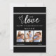 Tarjeta de Collage de Fotos con Feliz Día de San Valentín en Blanco y Negro Moderna. Comparte tu amor este Día de San Valentín con esta elegante y moderna tarjeta de foto. Con un fondo negro atrevido, la frase "Mi Amor" está elegantemente escrita con acentos de corazón caprichosos dibujados a mano. Abajo, un espacio para tus 3 fotos preciadas te permite personalizar esta tarjeta con tus propios recuerdos especiales. Un simple pero sincero mensaje de "Feliz Día de San Valentín" y tu nombre completan este diseño, lo que lo convierte en una forma perfecta de expresar tu afecto. Esta tarjeta moderna y chic es ideal para parejas que buscan enviar un mensaje único y personal a su pareja, novio, novia, esposo o esposa.