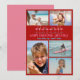 Flamingos familia Navidades tarjeta de foto plana con un lugar para cinco fotos de niños, mascotas, padres o fotos de vacaciones. Color rojo oscuro con dos plantillas de fotos en la parte superior. Una hilera de flamencos rosados con coronas de flores tropicales y parados entre una minúscula estrella de mar azul decoran el área de texto. El texto rosa moderno es fácil de personalizar con su elección de bienvenida y su firma familiar. En la parte inferior de esta tarjeta plana hay tres fotos más. El inverso es un sólido flamingo rosado.