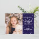 Envíe sus saludos de vacaciones este año con esta elegante tarjeta de fotos con las palabras "Navidades alegres" ambientadas en la tipografía moderna. Mi diseño incluye puntos de polka en caída de nieve mágica sobre un fondo azul marino para mostrar tu foto favorita en el frente. La parte trasera de la tarjeta tiene espacio para tres de tus fotos favoritas. Hacerlo propio usando el nombre de familia proporcionado, la imagen de la foto y las plantillas del año. También puede cambiar el color de fondo para que coincida con sus fotos.
