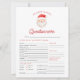 Este cuestionario secreto de Santa cuenta con una linda acuarela Santa face con una fuente divertida y festiva. Esta actividad secreta de Santa es perfecta para una fiesta familiar, de amigos o de oficina.