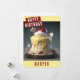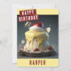 Una linda tarjeta de cumpleaños con una torta de cumpleaños con temática de Nieve Blanca en la parte delantera con "Feliz Cumpleaños", letra negrita de todas las mayúsculas. Personalice la parte delantera agregando su(s) nombre(s). El interior de la tarjeta incluye espacio para el mensaje escrito a mano o con tipeo.
