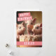 Una linda tarjeta de cumpleaños con un ilustracion de los Tres Cerditos en la parte delantera con "Feliz Cumpleaños" en una letra en negrita blanca y con mayúsculas. Personalice la parte delantera agregando su(s) nombre(s). El interior de la tarjeta incluye espacio para el mensaje escrito a mano o con tipeo.