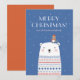 Esta tarjeta de felicitación navideña presenta una ilustración de un oso polar lindo con un pájaro en la cabeza. Se puede personalizar fácilmente con tu propio saludo y nombre. También hay espacio para fotos y más deseos en la parte posterior.