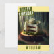 Una linda tarjeta de cumpleaños con una torta de cumpleaños temática sobre el bosque en la parte delantera con "Feliz cumpleaños", letra negrita de todos los gorros. Personalice la parte delantera agregando su(s) nombre(s). El interior de la tarjeta incluye espacio para el mensaje escrito a mano o con tipeo.