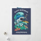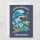Diseño de tarjetas de cumpleaños de personalizado de oleada de tiburón. Alimentar el frenesí mientras se monta en las olas. Ataque de tiburón; estética retro.