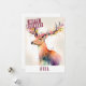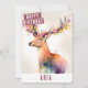 Una linda tarjeta de cumpleaños con un ciervo florido celebrando la primavera en el frente con "Feliz Cumpleaños" en una letra en negrita blanca y con mayúsculas. Personalice la parte delantera agregando su(s) nombre(s). La parte posterior de la tarjeta contiene espacio para el mensaje escrito a mano o con tipeo.