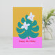 Personalizado tropical palmera floral hoja de flores moderna tarjeta de cumpleaños. Colorida tarjeta de cumpleaños moderna para mujeres, chicas, floridas niñas, jóvenes adultos, adolescentes, esposa, amantes de viajes por el 20° 30° 40 cumpleaños. Personalizada tarjeta de cumpleaños chica amarilla rosa linda con tu propio mensaje.