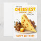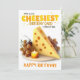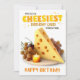 Esta humorística tarjeta de cumpleaños incluye un gran trozo de queso triangular con agujeros en un plato en el centro de la tarjeta. Hay una vela y algunas uvas en el plato también, pero el queso es la ocasión principal. El texto dice en amarillo: "Esta es la tarjeta de cumpleaños más cursi que pude encontrar. ¡Feliz cumpleaños!", lo que hace una manera única y cursi de decir feliz cumpleaños.