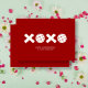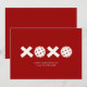 Casualmente Elegante pickleball tarjeta de felicitación de San Valentín con un alegre sentimiento de abrazos y besos. Los Os del sentimiento XOXO se reemplazan con gráficos de bola de pickleball. Tarjeta completa en rojo carmín.