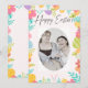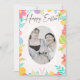 EASTER CARD linda foto simple y feliz. Crea tu propia tarjeta de fotos de vacaciones. Tarjeta de saludos rosa divertida en tonos pastel. Diseño moderno de huevos.