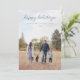 Tarjeta de Felices Fiestas con Foto Azul 5 y Texto. Personaliza con tus nombres, año y texto personalizado.