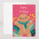 Tarjeta de Felices Fiestas con Galleta de Jengibre Retro Adorable.