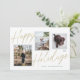 Esta tarjeta de fiestas con fotos casual, pero elegante, presenta tres fotos y dice "Felices Fiestas" en una fuente de escritura con falso foil dorado.
