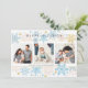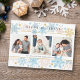 Esta tarjeta moderna y delicada es perfecta para enviar deseos de Navidad y días festivos a familiares y amigos. El diseño presenta una decoración a lo largo de los bordes superior e inferior, con copos de nieve de diferentes tamaños y colores suaves. Tres fotos familiares se muestran en el centro. Esta tarjeta elegante es ideal para celebrar la Navidad y todos los días festivos durante la temporada de invierno.