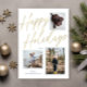 Esta tarjeta de fiestas casual, pero elegante, presenta tres fotos y dice "Felices Fiestas" en una fuente de escritura con lámina de oro falsa.