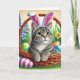 Festiva Tarjeta de felicitación Bunny Cat Kids de Pascua