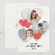 Elegante tarjeta de felicitación de collage de fotos planas con seis formas de corazón superpuestas, tres con fotos personalizadas. Abrir encabezado de texto - marcador de posición del personalizar para que se ajuste a su evento (por ejemplo: "Feliz abuelo de San Valentín"). Perfecto para el El día de San Valentín, el Día más dulce, el Día de la Madre, el Día del Padre, el Cumpleaños, o cuando quieras compartir tu amor, alegría y algunas simples fotos. stub de mensaje personal. Disponible en una selección de colores vivos y modernos. También disponible como tarjeta plegada.