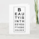 El diseño de Eyetest que lee "belleza está en el ojo del espectador" y la línea interior lee "… y mi vista es 20/20"